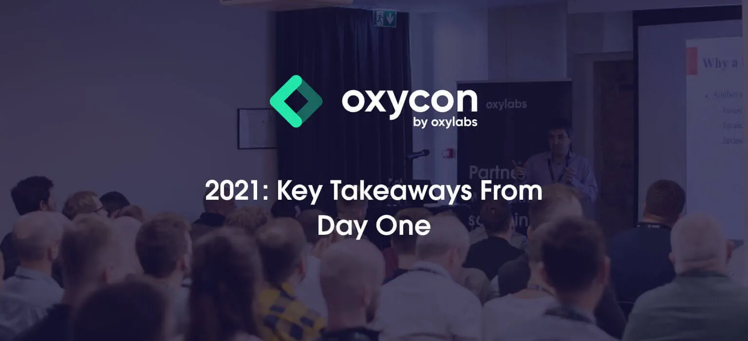 While the present global scenario is unfavorable for face-to-face meetings, Oxylabs has held a virtual event we’ve all been waiting for so long: OxyCon 2021. This late-summer afternoon has finally brought us together for a two-day conference, boosted with know-how by experts from market-leading businesses. 16 speakers have gathered online to cover the most relevant aspects of web scraping.
